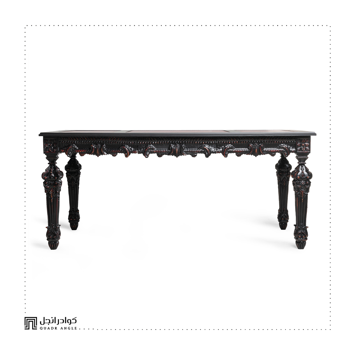 The Ravena Desk is a masterpiece carved from premium solid wood, adorned with intricate hand-sculpted details that echo the grandeur of classical European design. Its deep noir finish with subtle crimson undertones highlights the depth of its craftsmanship, making it not just a desk—but a statement of heritage and refinement.